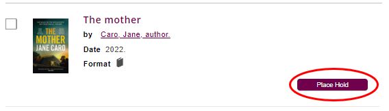 - Place a hold(s) on the title, see Placing holds.
