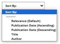 - If you are using a PC or laptop and your results are less than 1000 titles, you can re-sort by Year, Title or Author using the Sort By: drop-down menu. The Sort By: drop-down menu is placed on the right-hand side below the search box and above the results found.