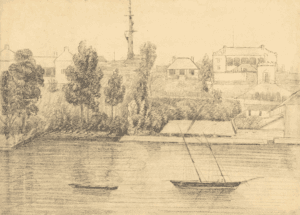 (1854) Artist unknown. Pencil on paper, 30 x 53 cm (framed size), FA231