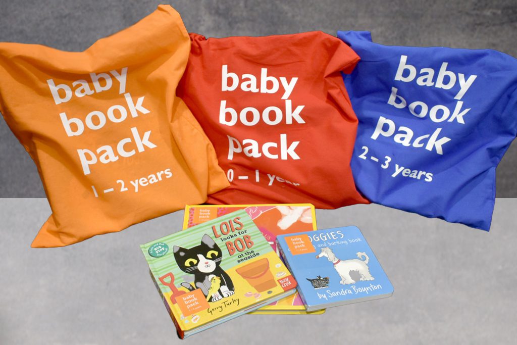 Each of our baby book packs has five books, including board books, picture books, simple stories, nursery rhymes and old favourites. They are available for three age groups and come in bright, colourful, sturdy bags.