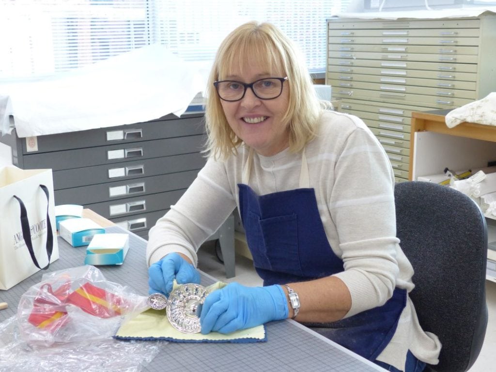 The ribbons were protected during washing. The cup was then dried with a soft cloth and polished with a silver cloth. The ribbon was gently ironed.