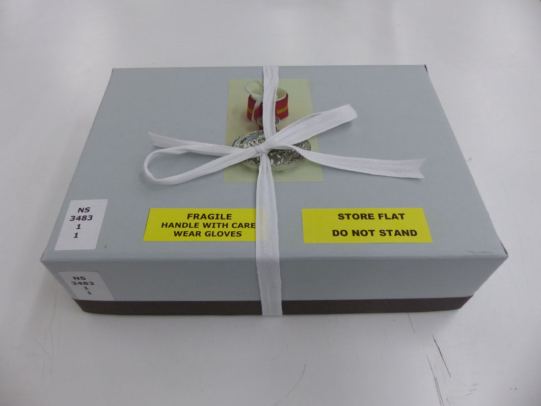 The item was photographed by our digitisation team, so that a high-quality image could be placed on the box to inform us of the contents and deter unnecessary handling.