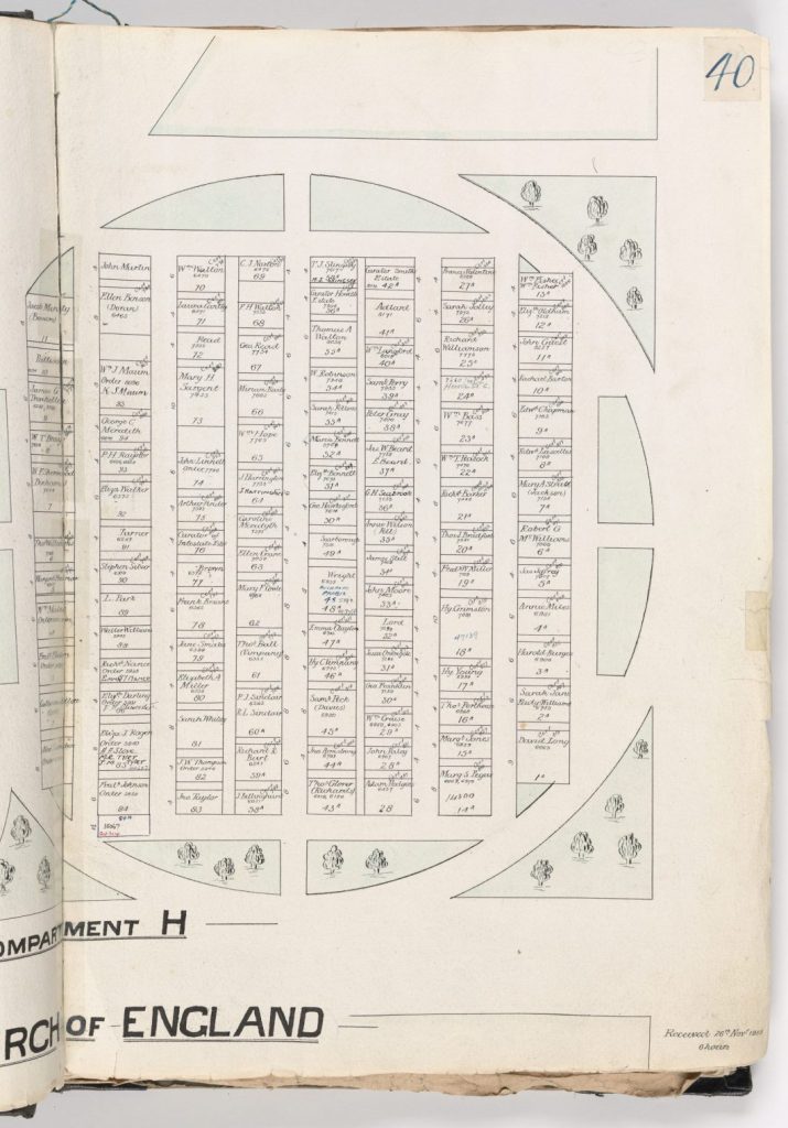 These can be used together with the burial order records in our Names Index to find the location of a person’s gravesite. In time, we will have these images linked to the Names Index.