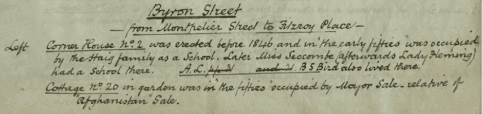 - William Graham Robertson, Hobart streets: [Hobart] : William Graham Robertson, 1919. This digitised handwritten guide provides rich detail on early 19th century Hobart streets and structures.
