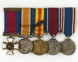 “During the advance on the 18th of September 1918 near Le Verguier, north of St Quenton, he acted as a right guide to his battalion, and despite the great difficulties caused by fog and uncut wire and heavy machine-gun and artillery fire, carried out his duties in a most gallant and skilful manner. On reaching the first objective he was sent ahead to reconnoitre, and located a large party of the enemy. He threw bombs at them and twenty surrendered. These he bought back with him, and then got together a party of men and again attacked the enemy taking further prisoners. At the first objective he had received a painful wound in the leg, but he carried on right to the final objective. He behaved splendidly.”