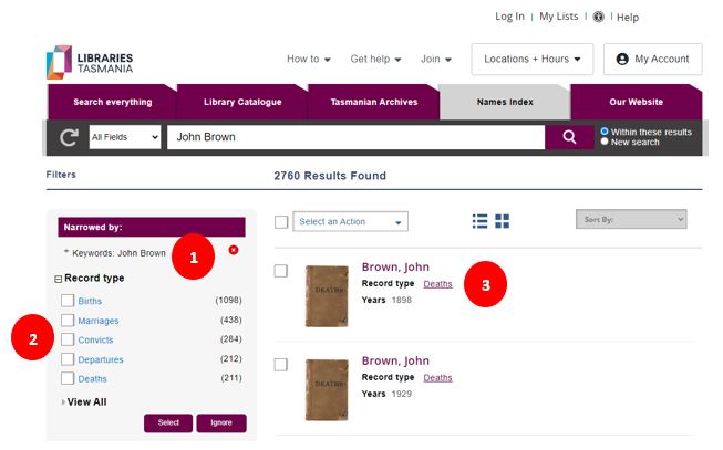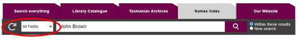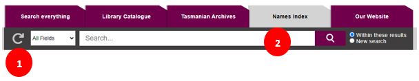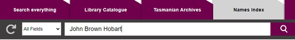 To start searching the Tasmanian Names Index, click the Search button at the top of our website.