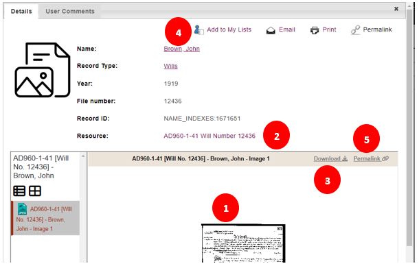 - You can also download the highest quality copy of this record by clicking “Download Copy”. Clicking the red links will perform a new search for the words in that link. For example, a subject search for all Record Types “Wills”.
